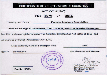 A parent-teacher association is the formal organization composed of parents, teachers & staff that is intended to facilitate parental participation in a college. Parent-Teacher association has been registered under Reg. No. 5079.